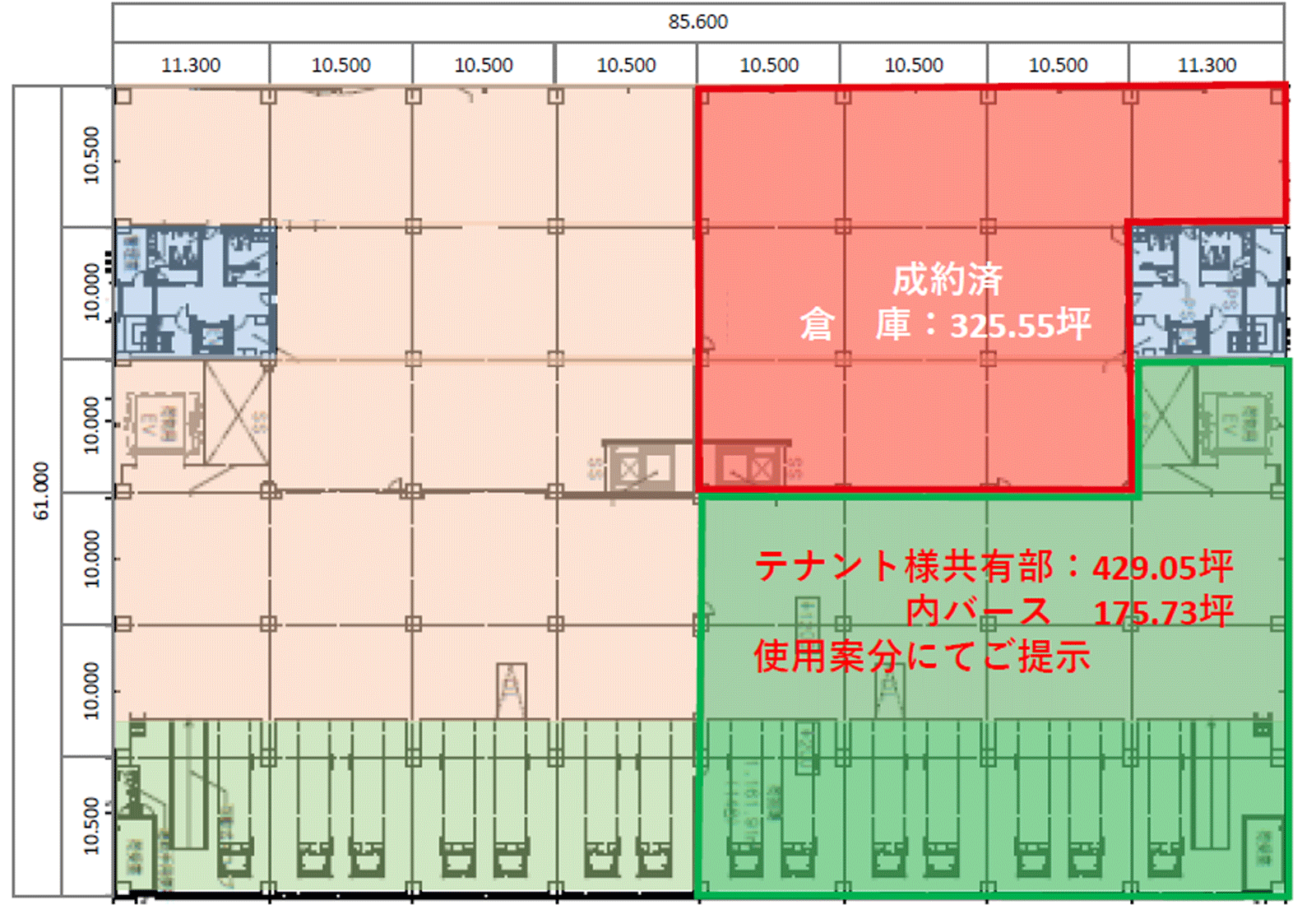 | その他 | 2分割の場合は使用坪数に応じて条件応相談 寄託でのご相談可 |